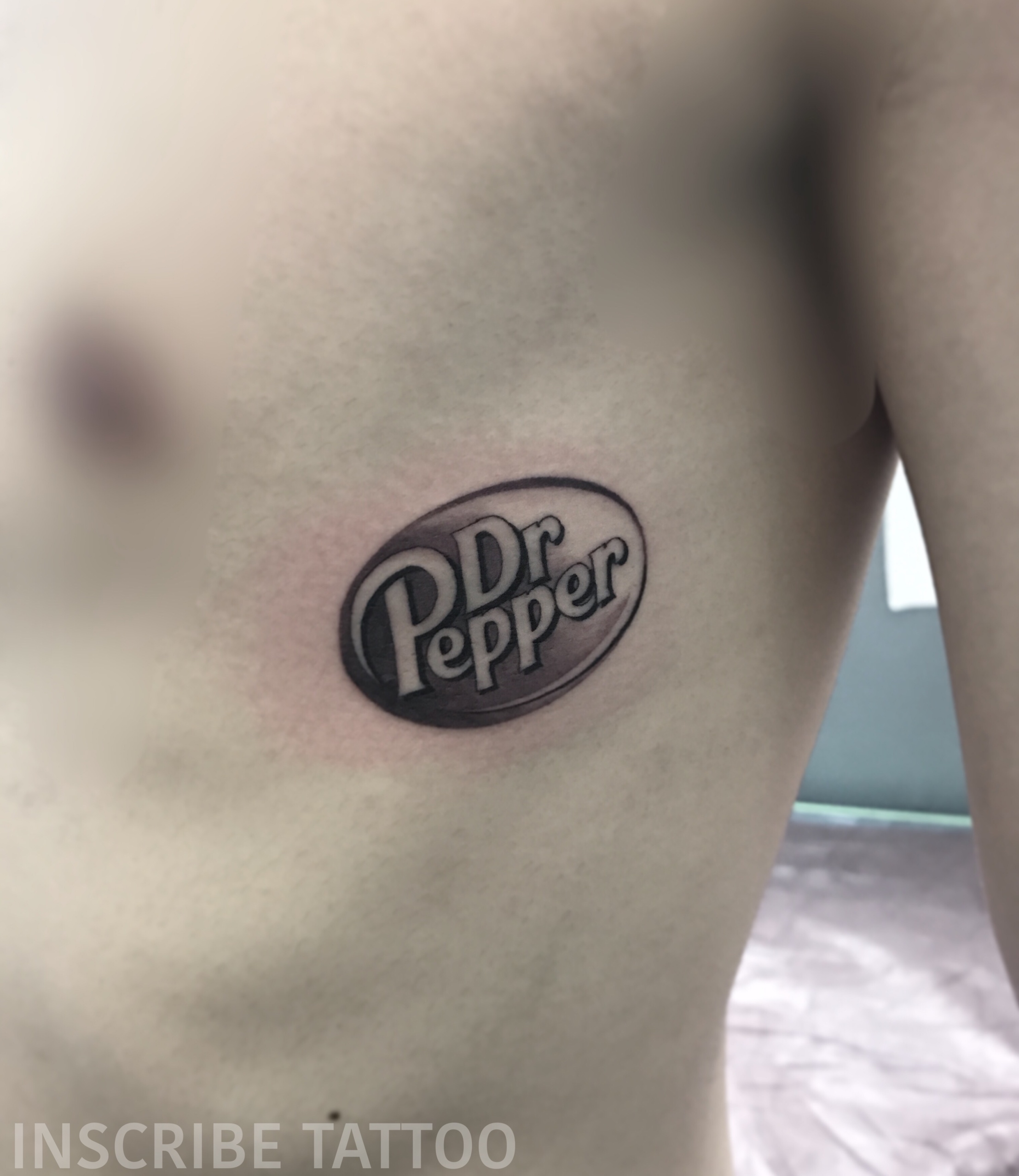 脇腹にドクターペッパーのロゴをデザインしたワンポイントタトゥー・刺青です。