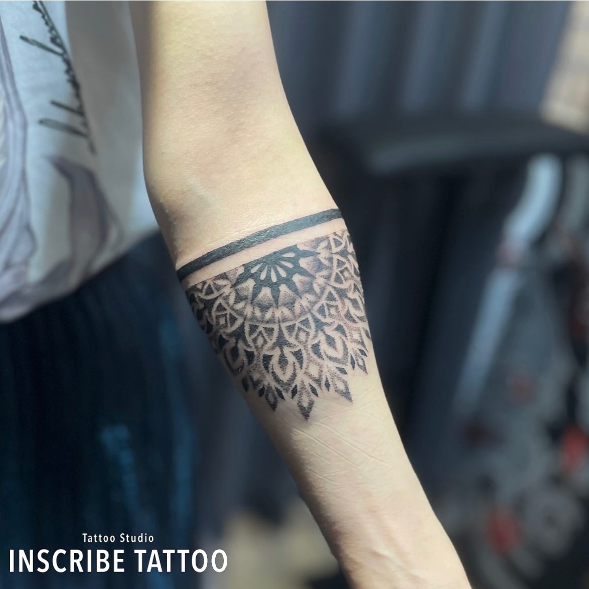 前腕に曼荼羅のタトゥー、刺青です。