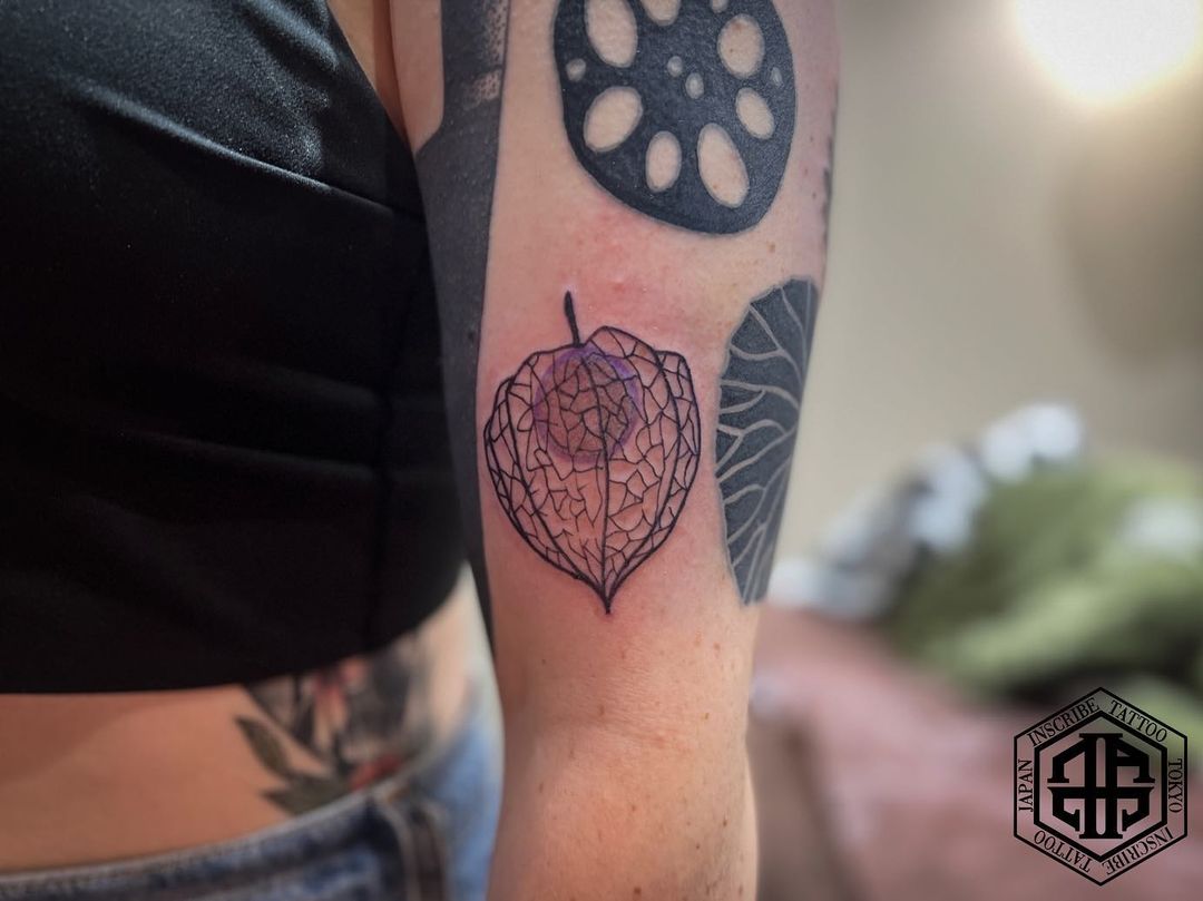 腕に葉っぱやイチョウなどのタトゥー・刺青です。