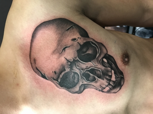 スカルのタトゥーは様々なジャンルで人気のモチーフの一つです。平等、死、魔除けなどの意味を持ちます。