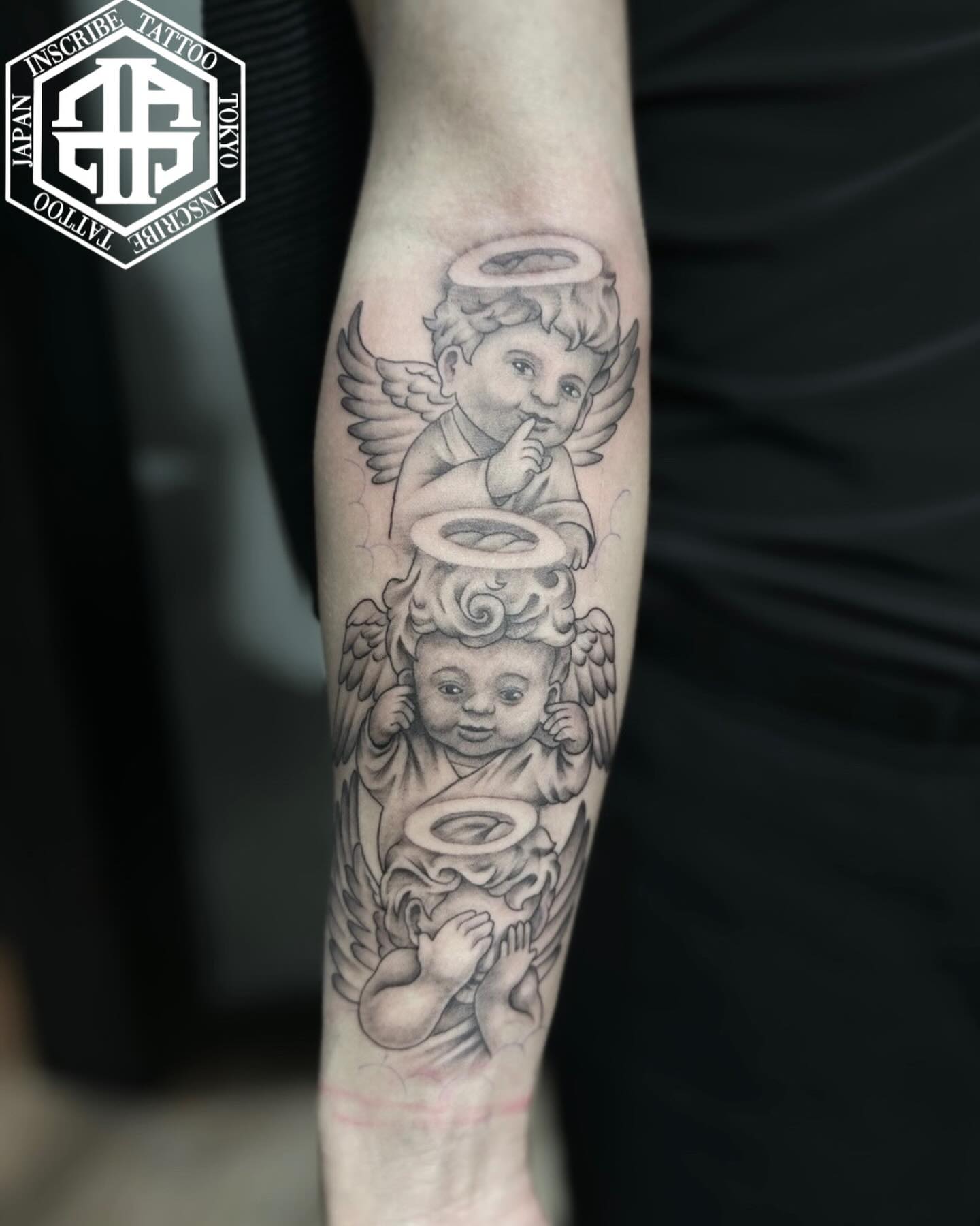 前腕委見ざる聞かざる言わざるの天使のタトゥー、刺青です。