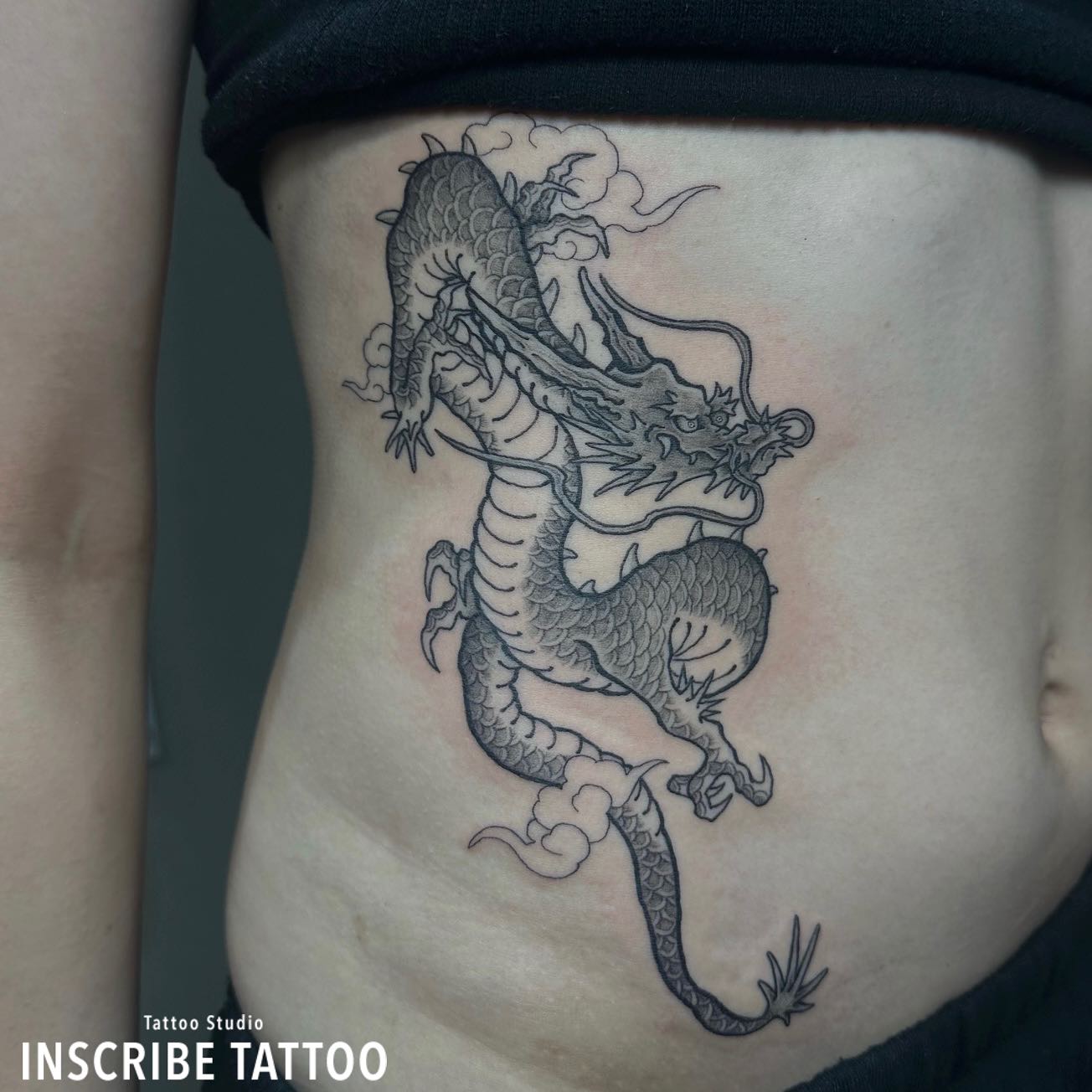 腹部に龍のタトゥー、刺青です。