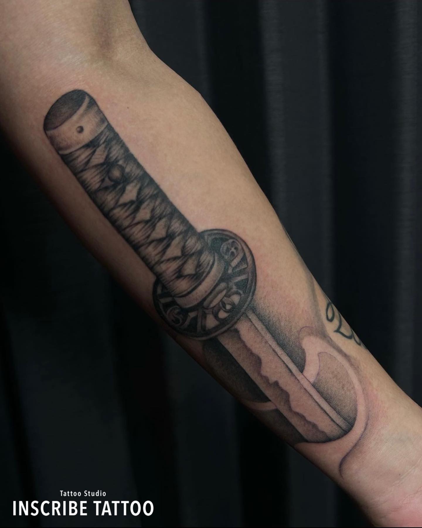 前腕に日本刀のタトゥー、刺青です。