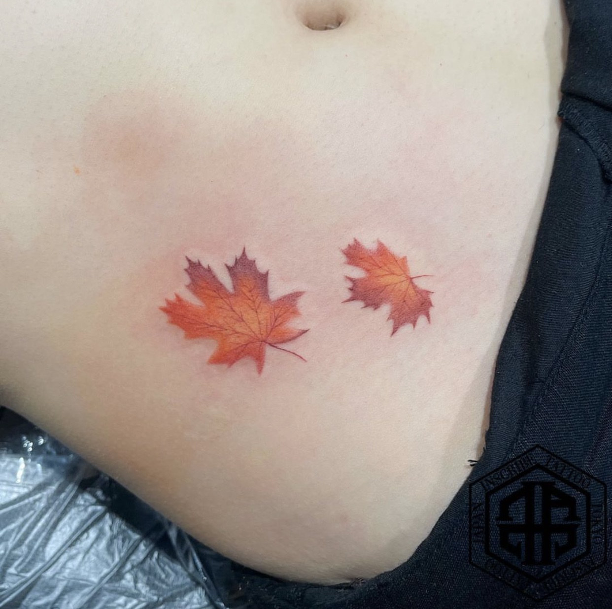 楓の葉っぱをカラーで施術したタトゥー・刺青です。