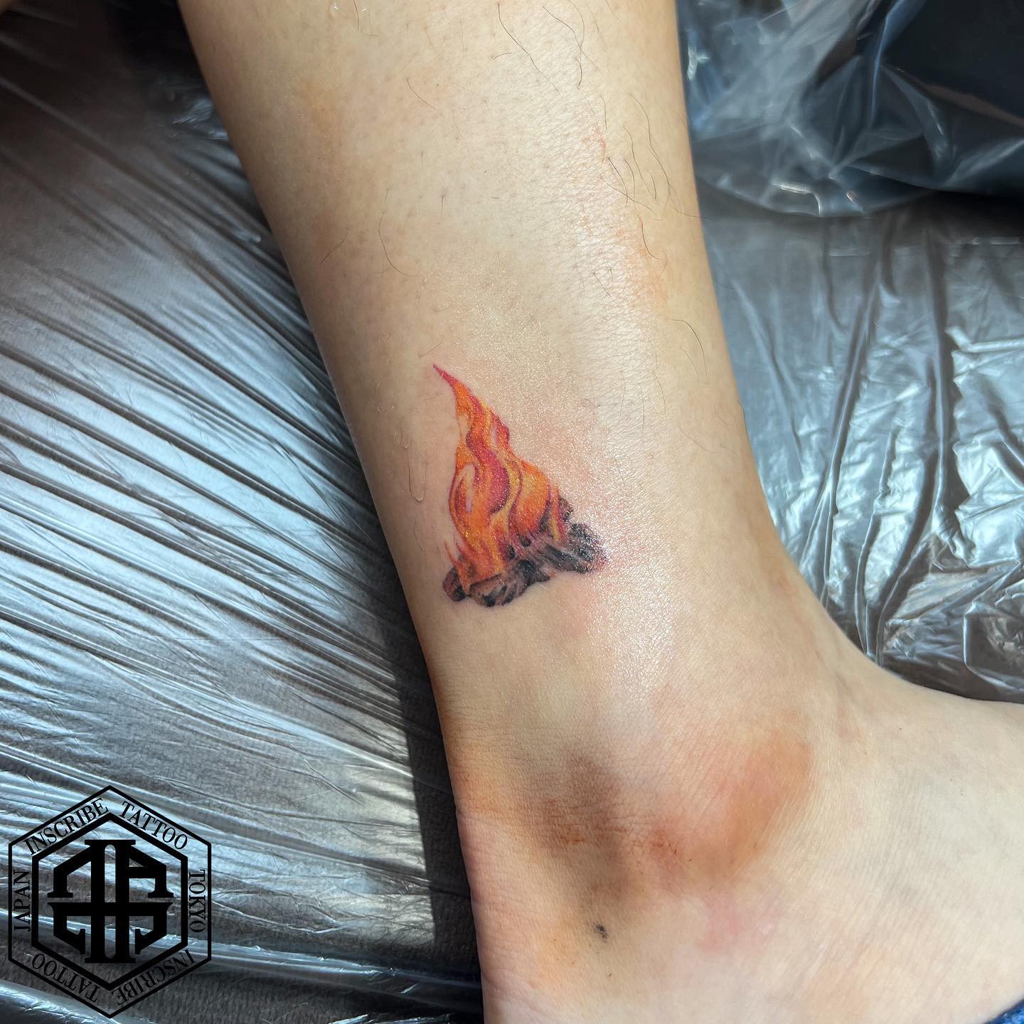 足首に焚火のタトゥー、刺青です。