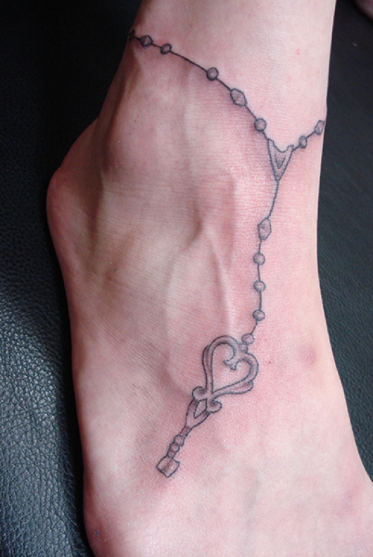ハートと十字架とアクセサリーをモチーフにしたデザインのタトゥーです。