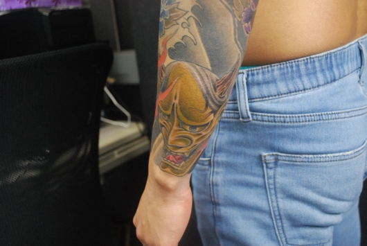 般若をモチーフにしたデザインのタトゥーです。