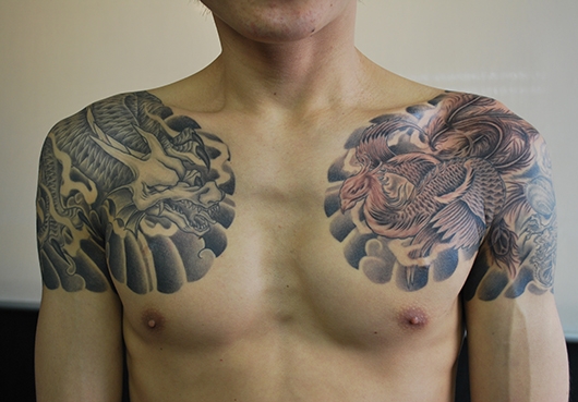 龍と朱雀をモチーフにしたデザインのタトゥーです。
