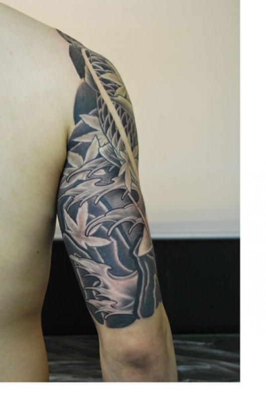 紅葉と鯉をモチーフにしたデザインのタトゥーです。